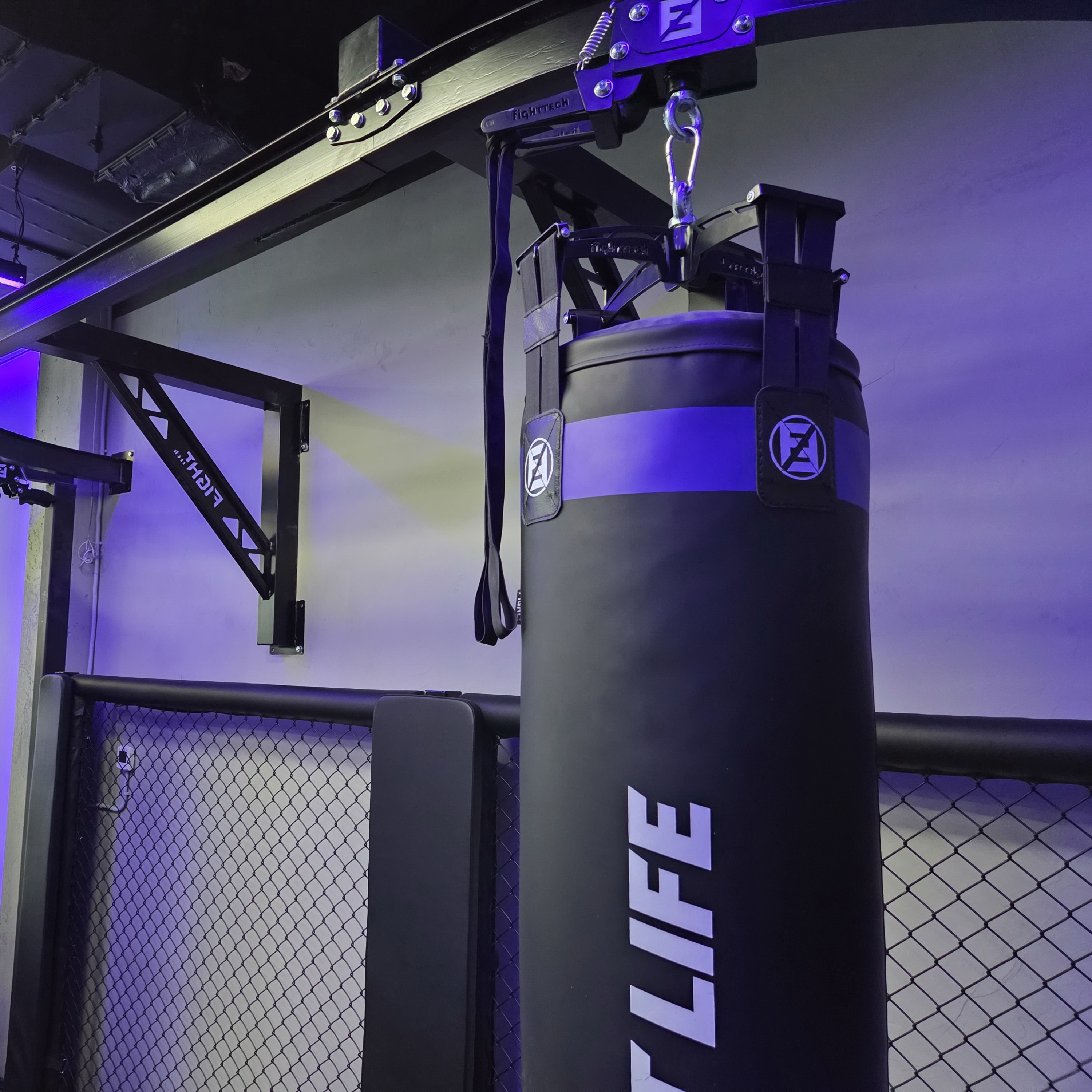 Предназначена в основном для уменьшения общей высоты подвеса мешка. Обычно стандартный подвес на цепях или стропах добавляет к верхней части мешка порядка 40 см, и в случае «низкой» точки крепления мешка это критично. Крестовина уменьшает эту высоту на треть и дополнительно препятствует «сминанию» верхней части мешка.