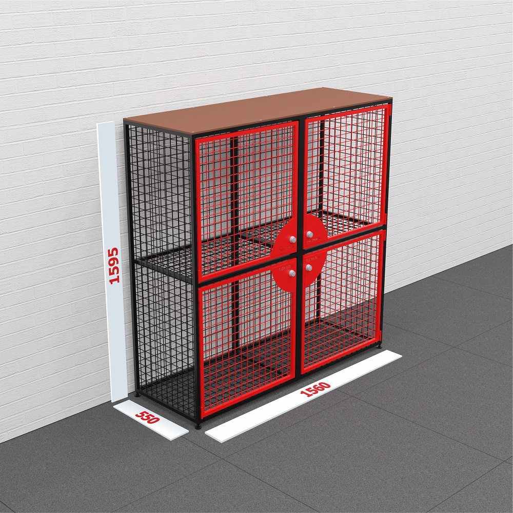 Цена указана за конкретный размер (ширина 1560мм, глубина 550мм, высота 1595мм). Комплектация: каркас из металлопрофиля со стенками из из металлической сетки, дверцы из металлопрофиля с металлической сеткой, навесным замком и табличкой с номером.